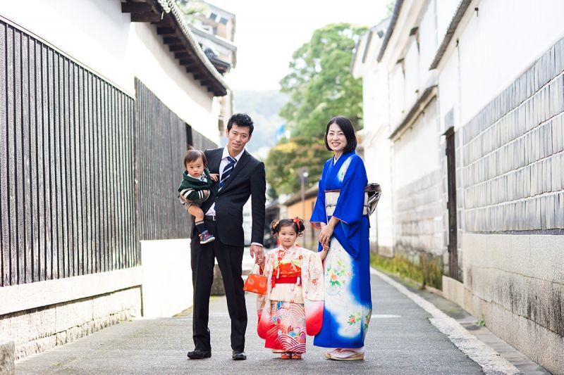 倉敷美観地区にカメラマンと撮影アシスタントが出張し、記念写真を撮影します。
